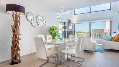 velkoformátovými okny, obývacím pokojem s dvojitou výškou stropu,